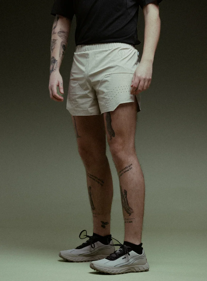 The men's Force trail running shorts 4" in stone are lightweight, breathable and moisture wicking shorts with a brief liner. Constructed from ripstop fabric with laser cut ventilation. Features a double waistband, elasticated for comfort with a concealed back pocket for storing small essentials.